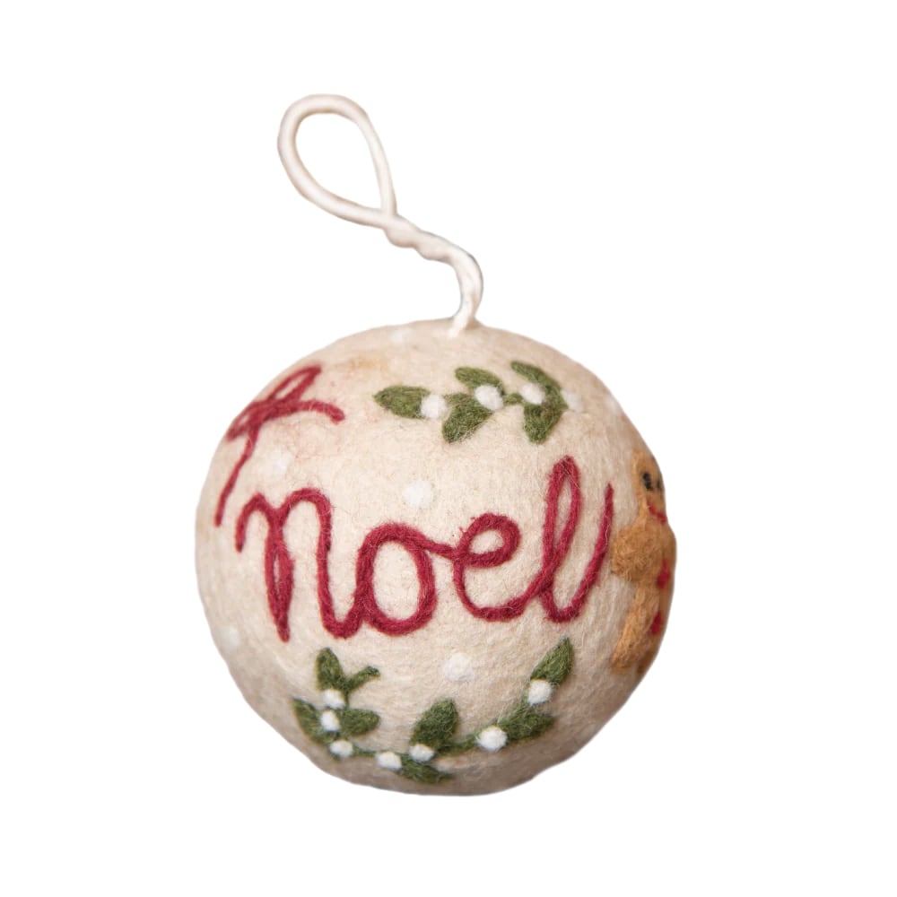 「NOEL」の文字と細やかなホリデーモチーフが刺繍された、季節の喜びを感じさせるかわいらしいオーナメントです。