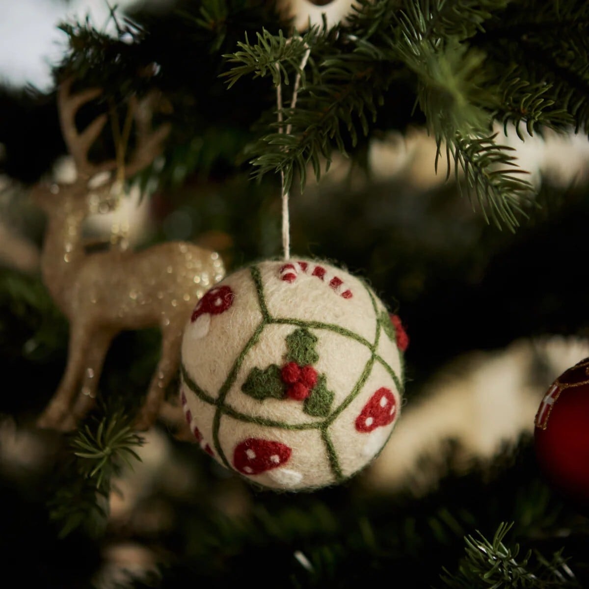 Shirley Bredal/Bauble Grid Ornament with Mushroom -Cream