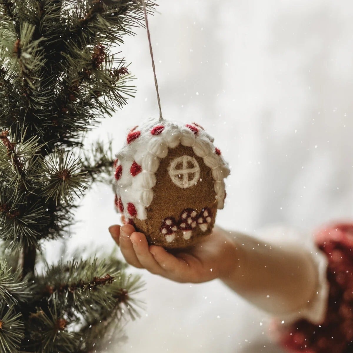 温かみと伝統を感じさせる、かわいらしいジンジャーブレッドハウスのオーナメントです。