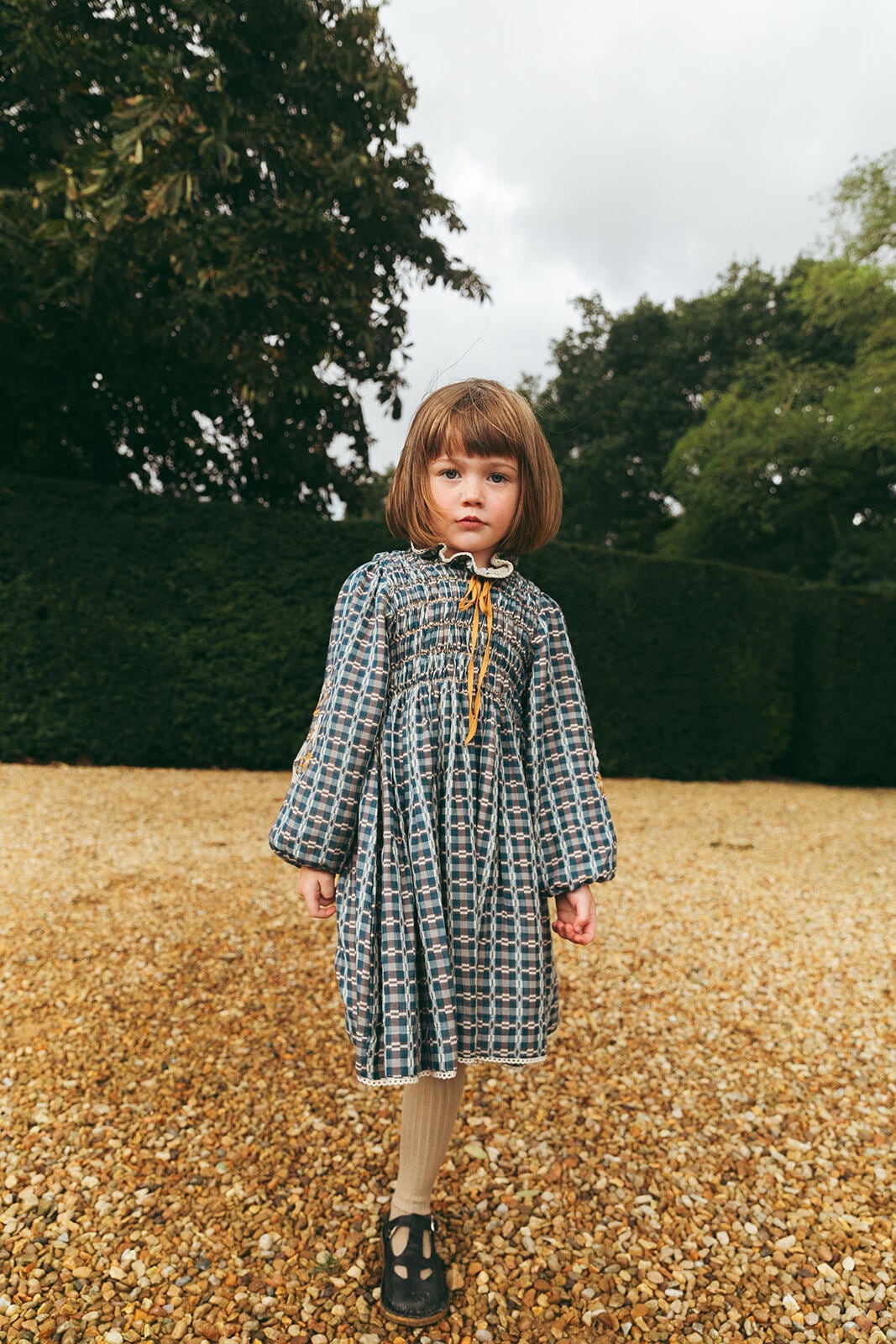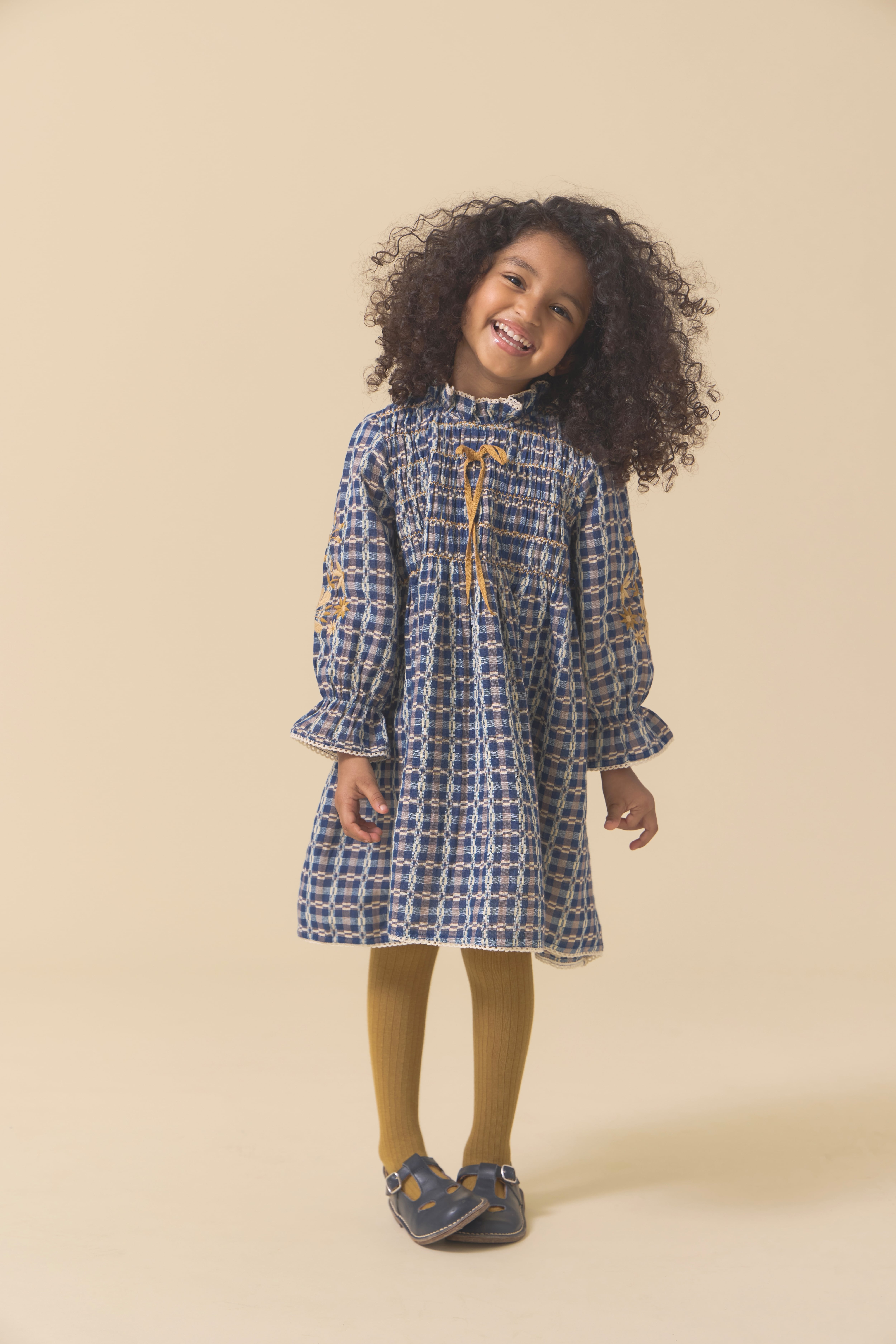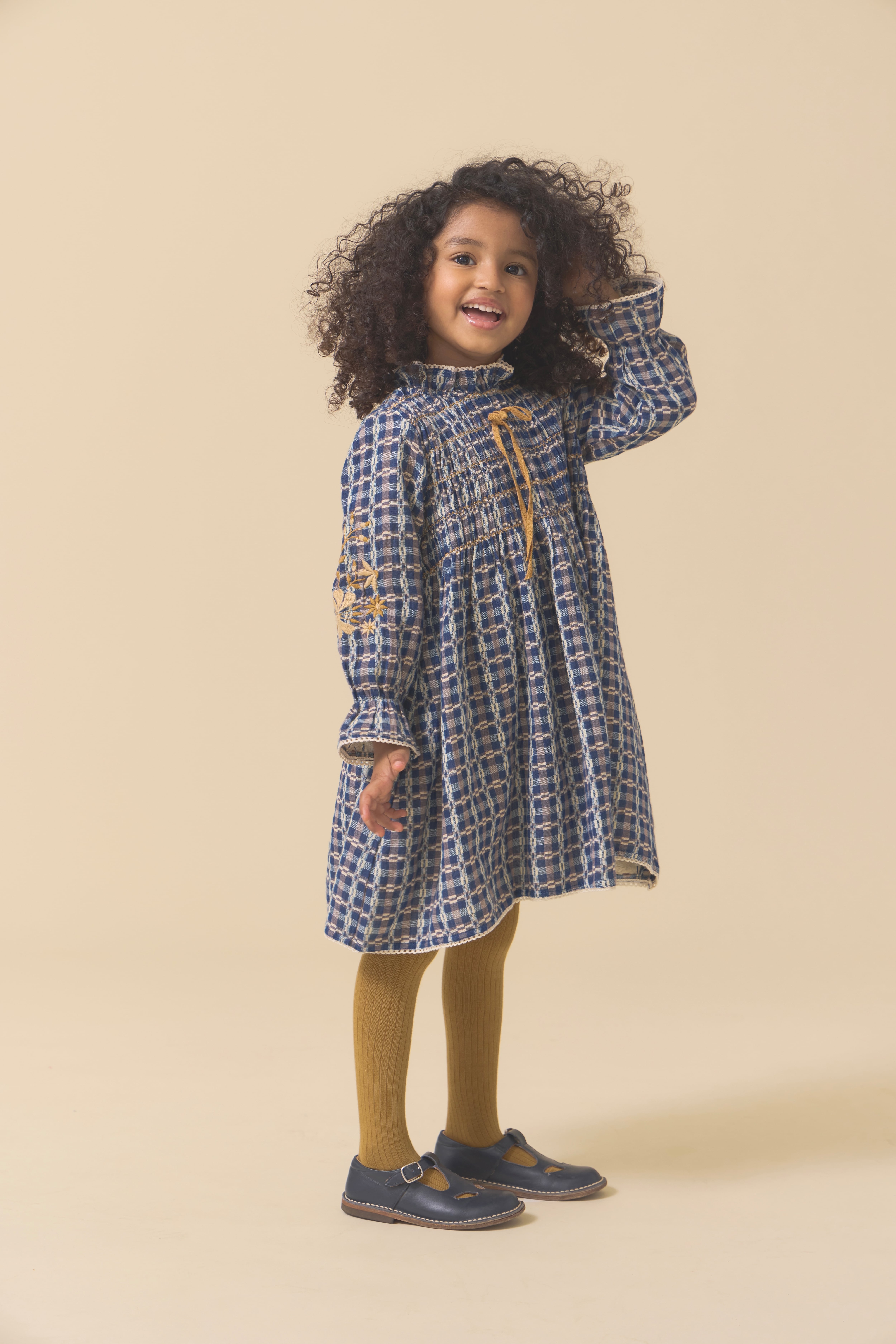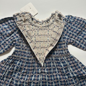 胸元のスモッキング刺繍は横に伸びるので着脱も簡単で着心地も良さそうです。