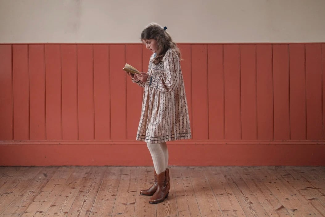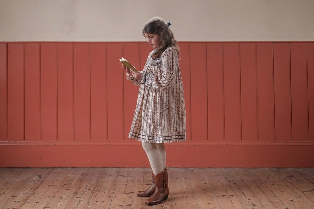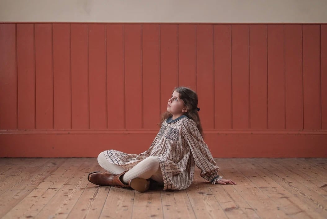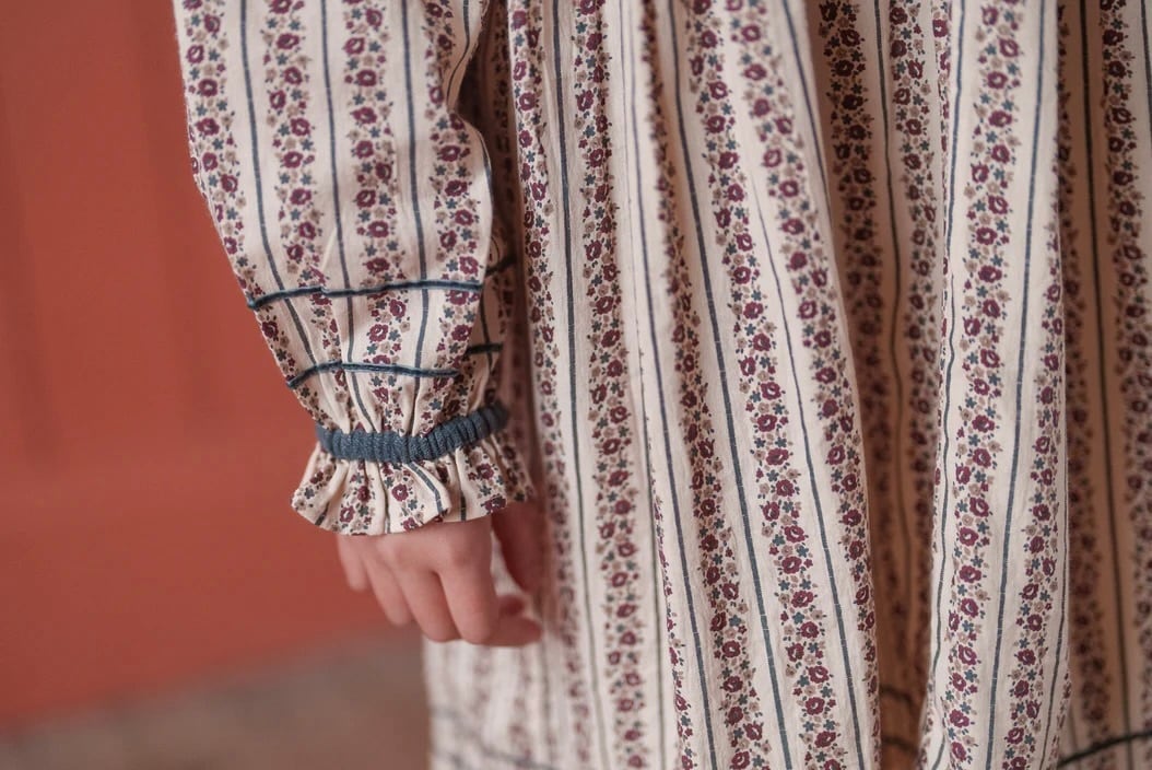 オーガニックのマロリーフローラルプリント生地で仕立てた、ヴィンテージ風のワンピース。