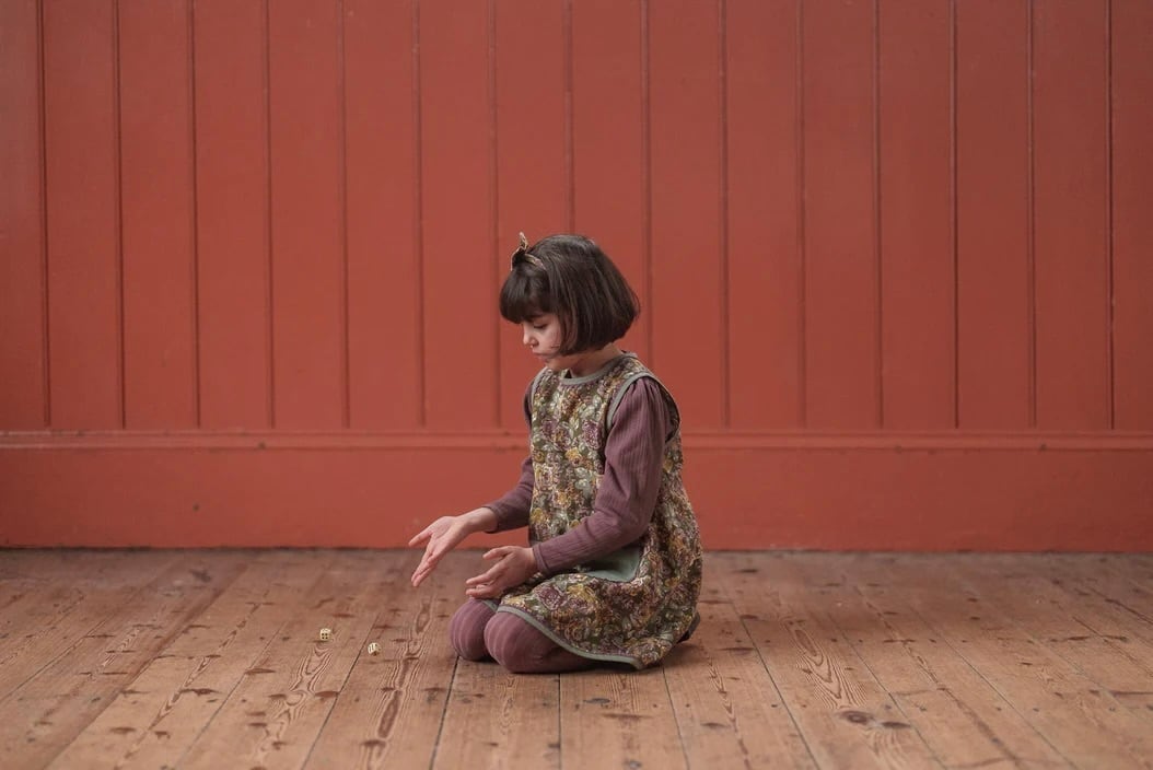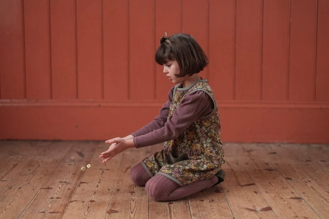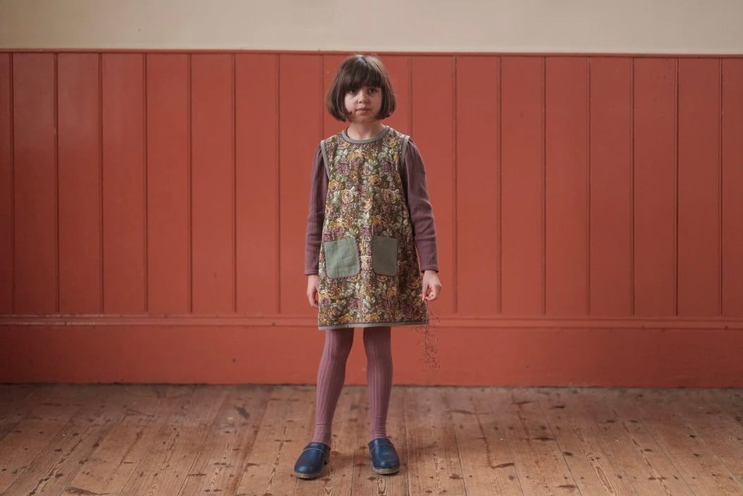 ピナフォアとしても1枚でも着られて、Tシャツやブラウス、カーディガン、靴下とのコーディネートも楽しめます。