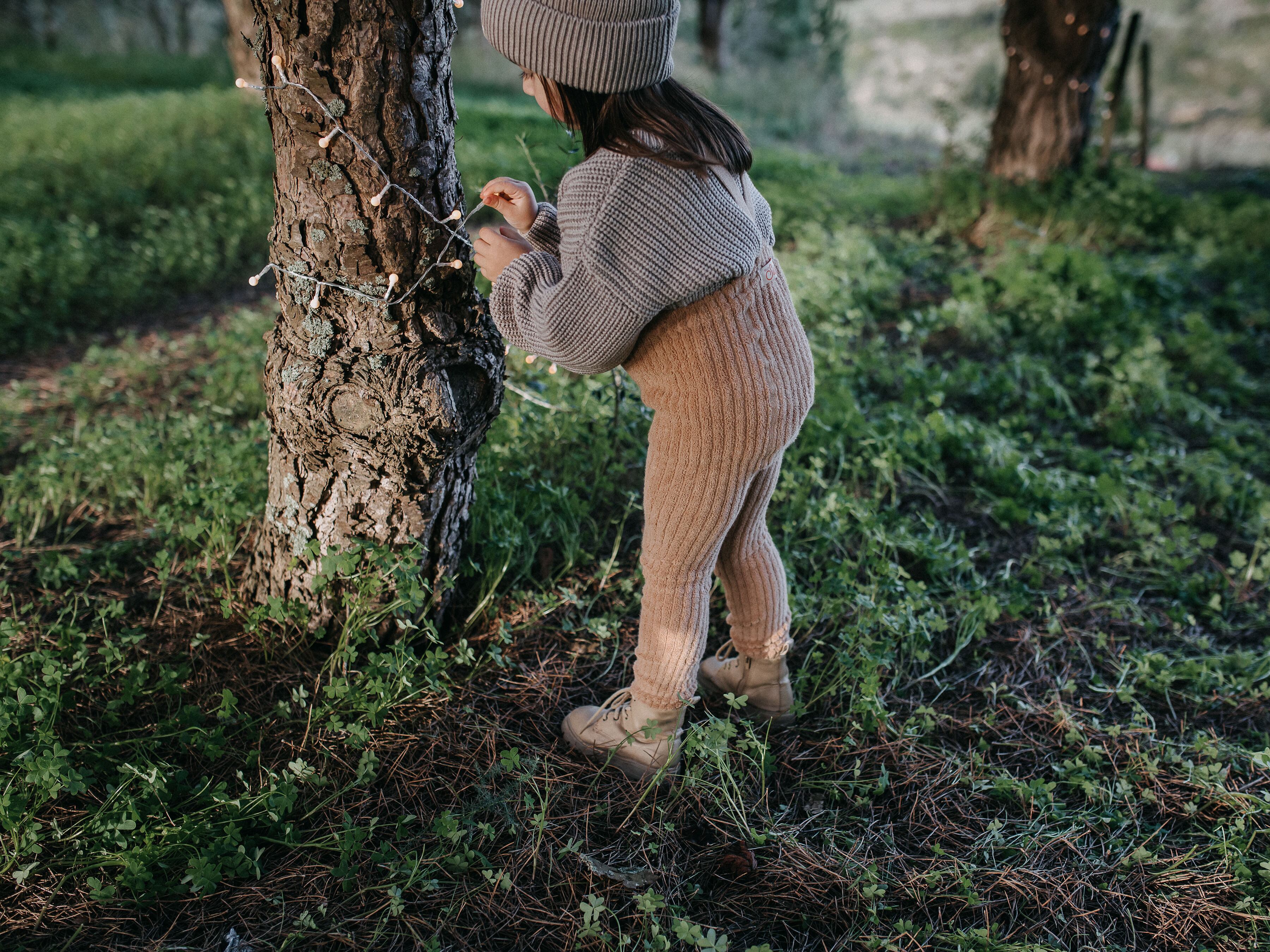 “おばあちゃんのタイツ”と名付けられたヴィンテージライクなワイドリブ生地は、どこか懐かしい雰囲気。デザインはそのままに、テディベアのようなふんわり質感で、お子さまのお腹をあたたかく包みます。