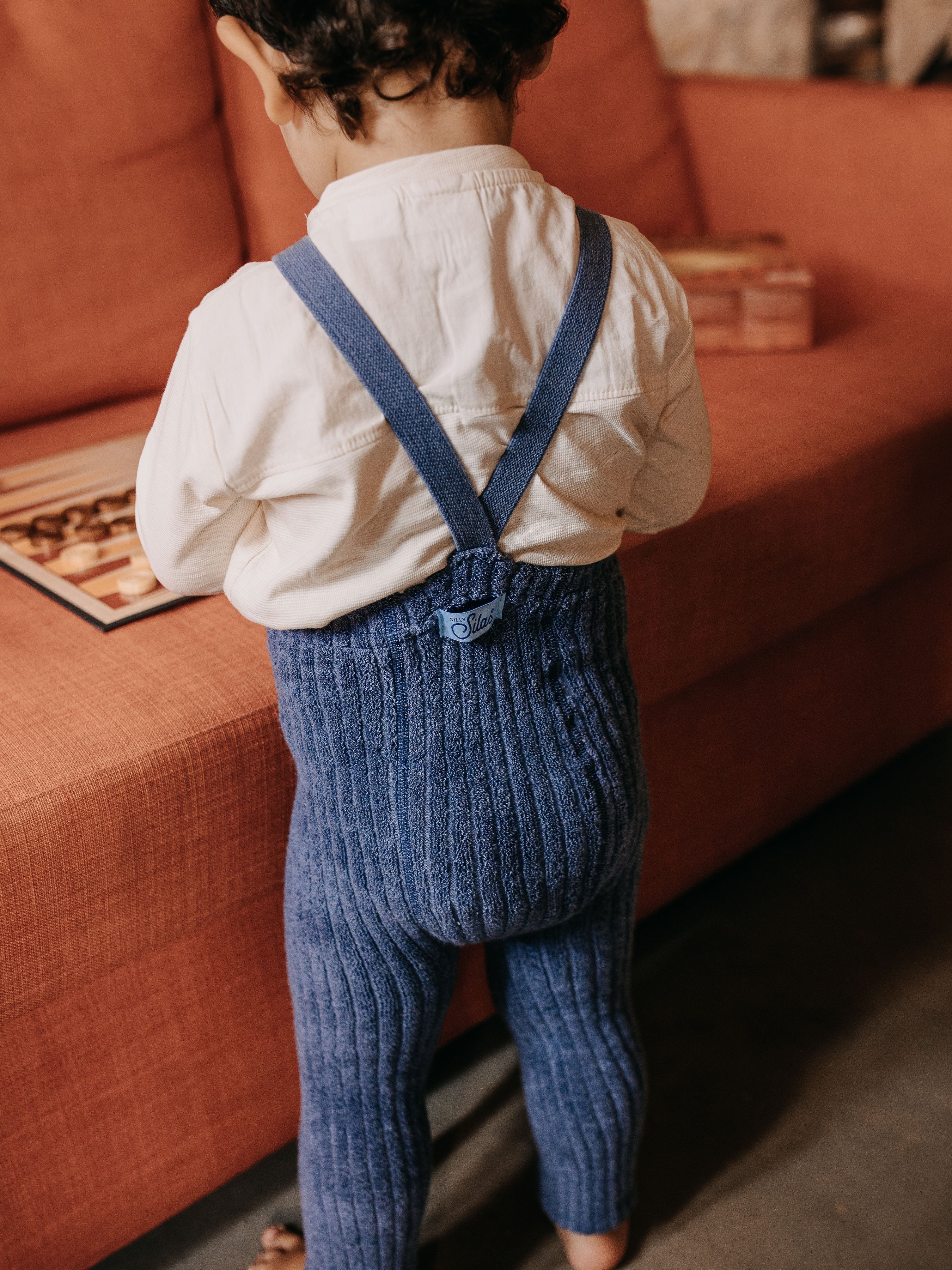 「SILLY Silas」、肩ひも付きグラニーテディウォーミーフットレスタイプ(レギンス)。