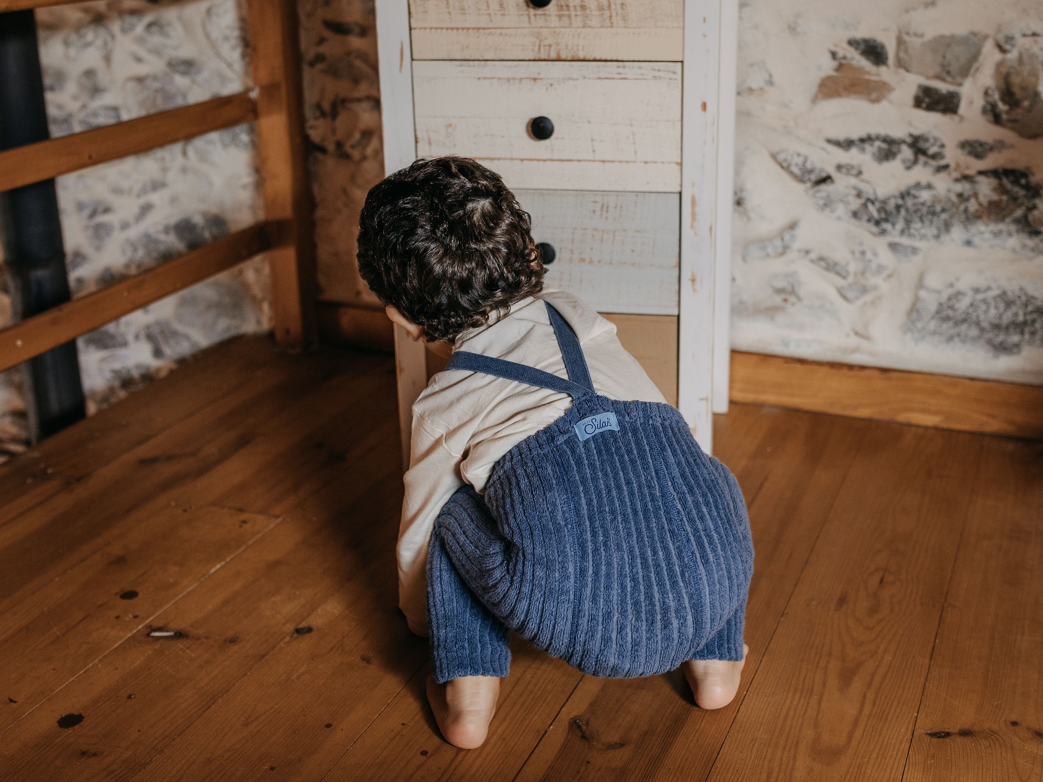 “おばあちゃんのタイツ”と名付けられたヴィンテージライクなワイドリブ生地は、どこか懐かしい雰囲気。デザインはそのままに、テディベアのようなふんわり質感で、お子さまのお腹をあたたかく包みます。