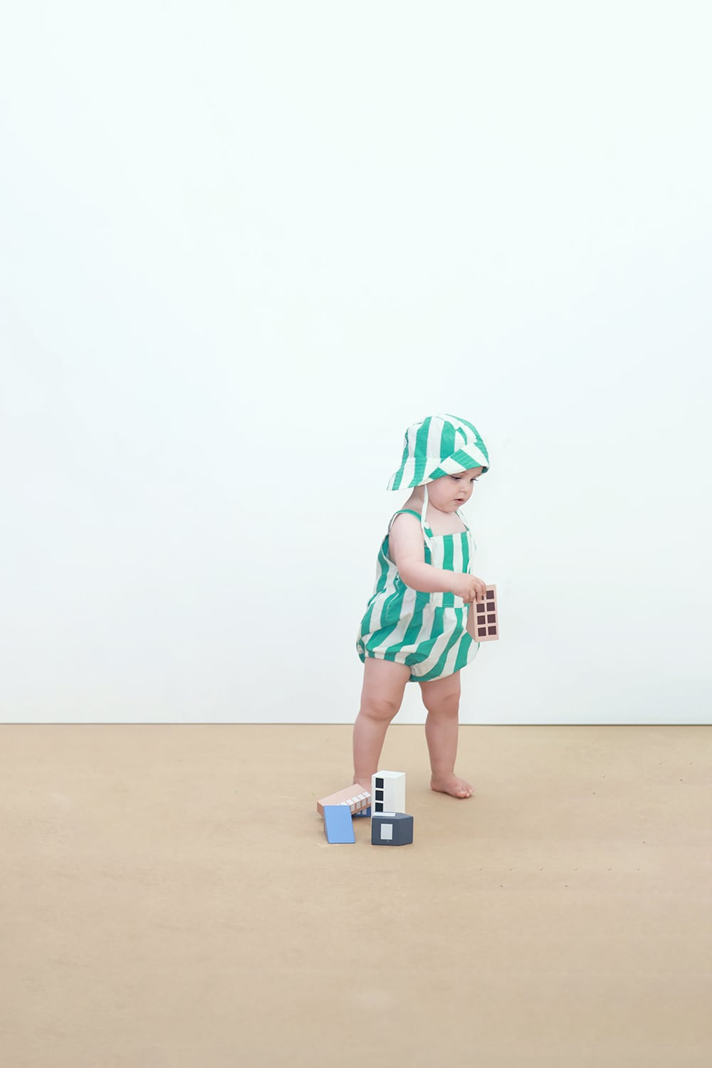送料無料 tinycottons/EMERALD STRIPES BUCKET HAT emerald
