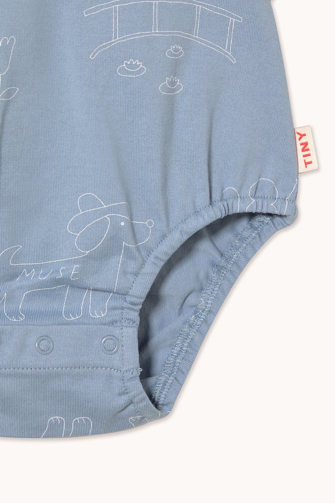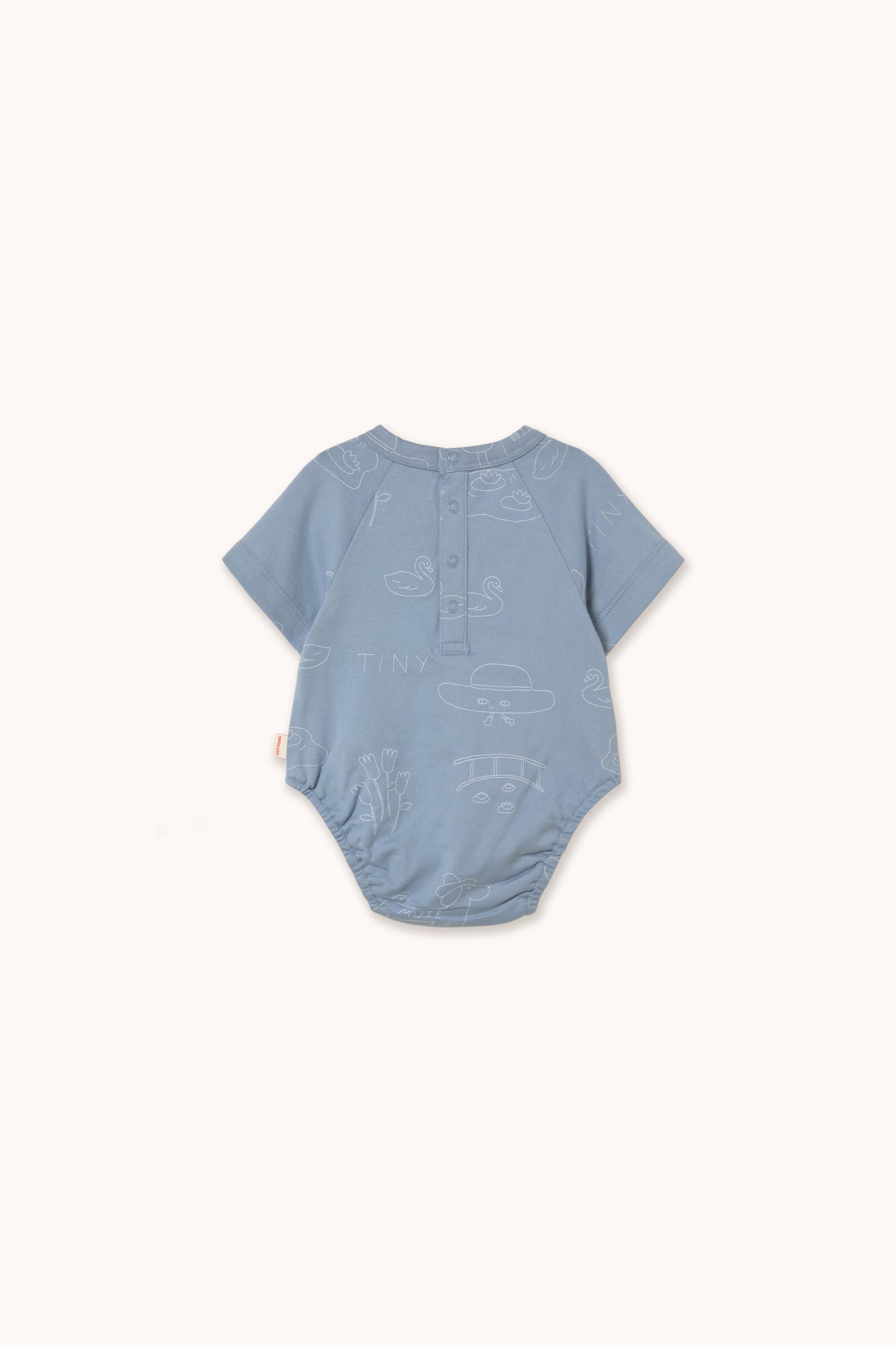 ゆるやかなタッチのイラストを散りばめたロンパース。
