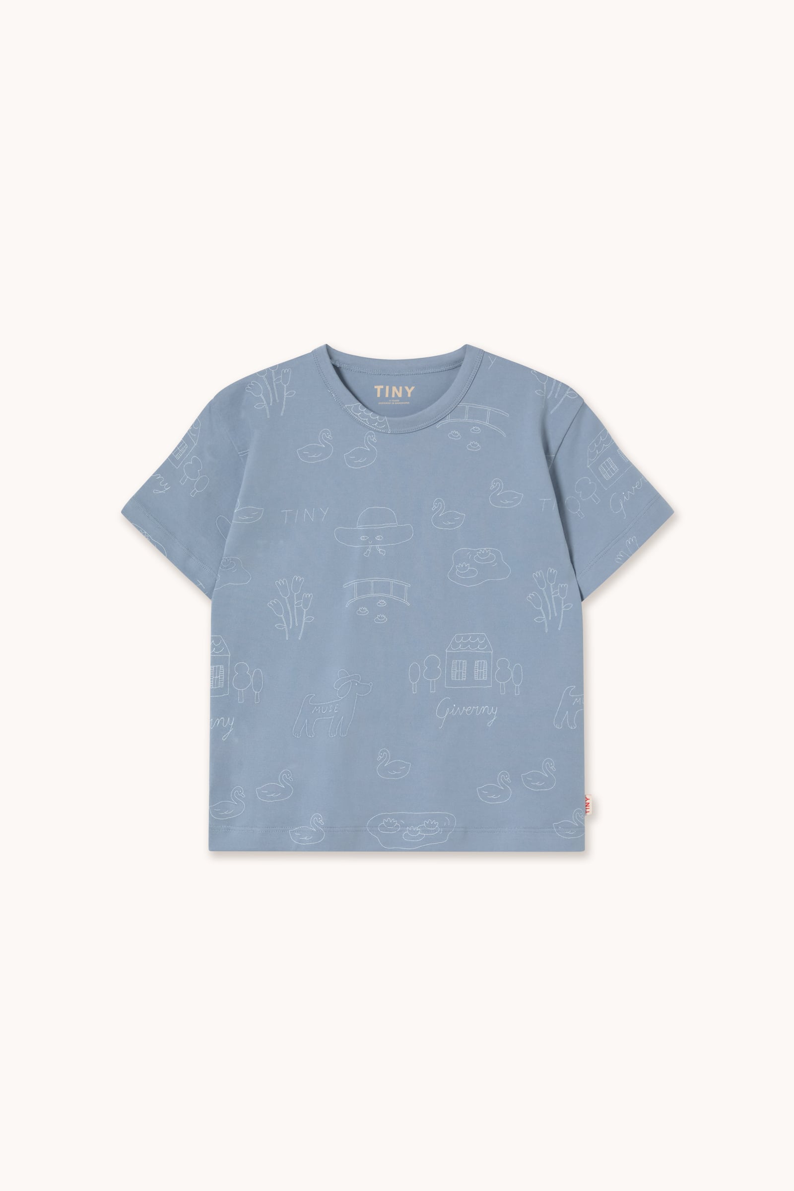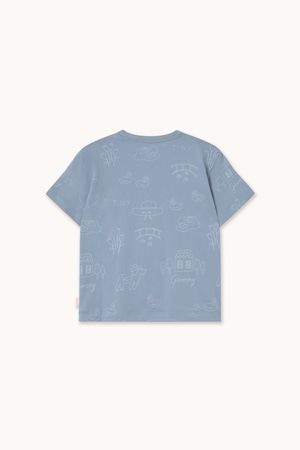 ゆるやかなタッチのイラストを散りばめたTシャツ。