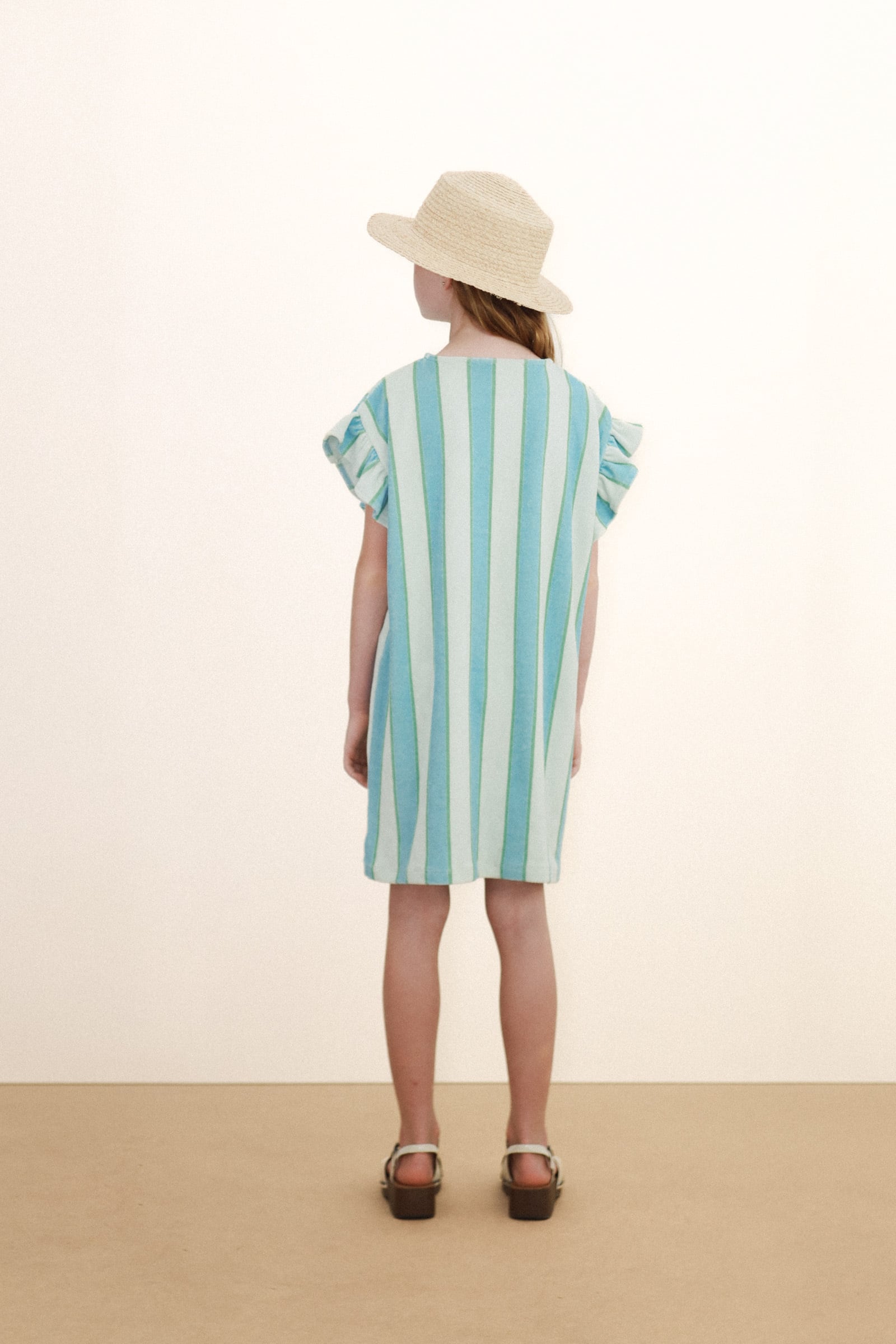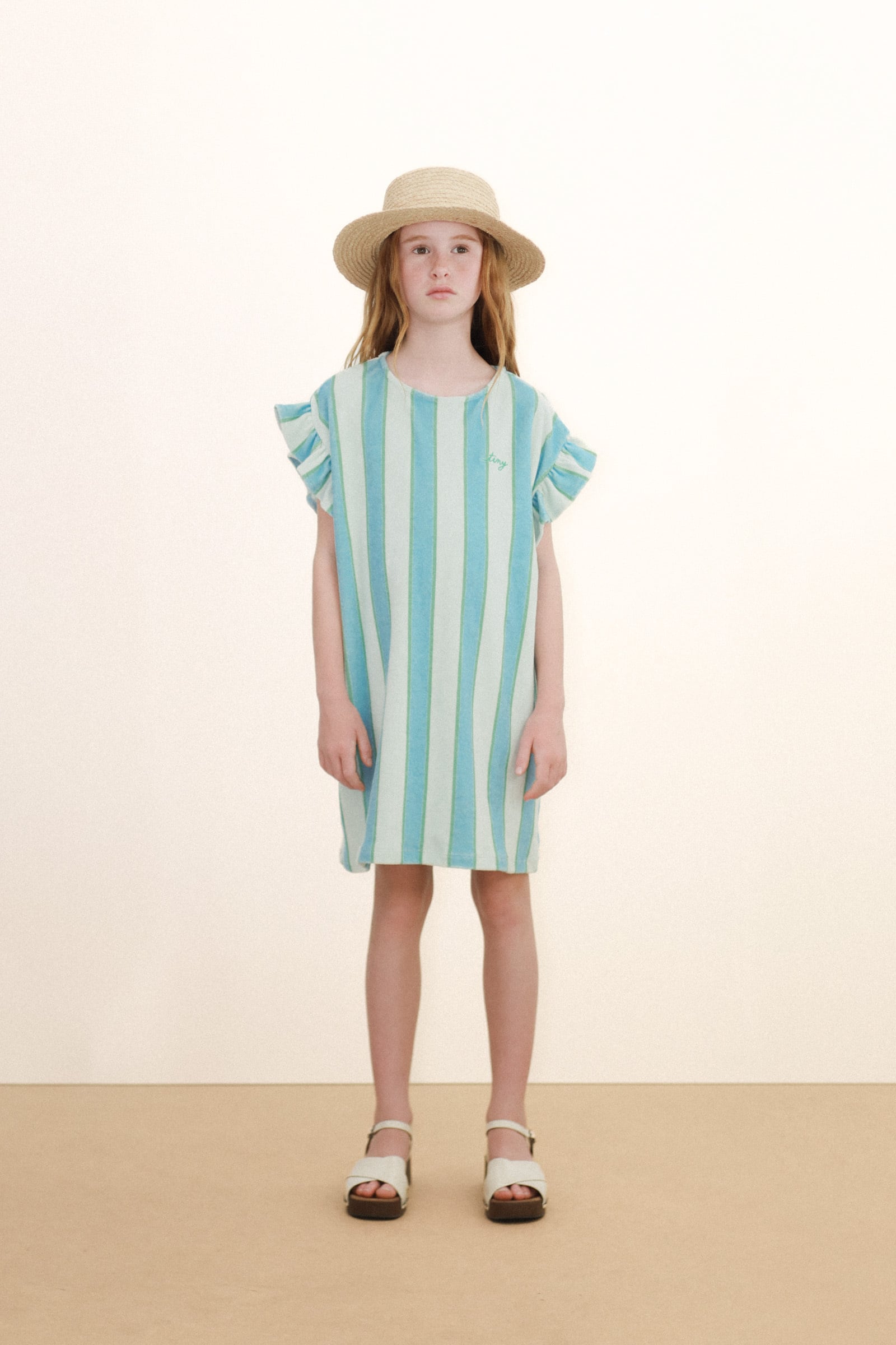 送料無料 tinycottons/RETRO STRIPES BLUE TOWEL DRESS pale mint