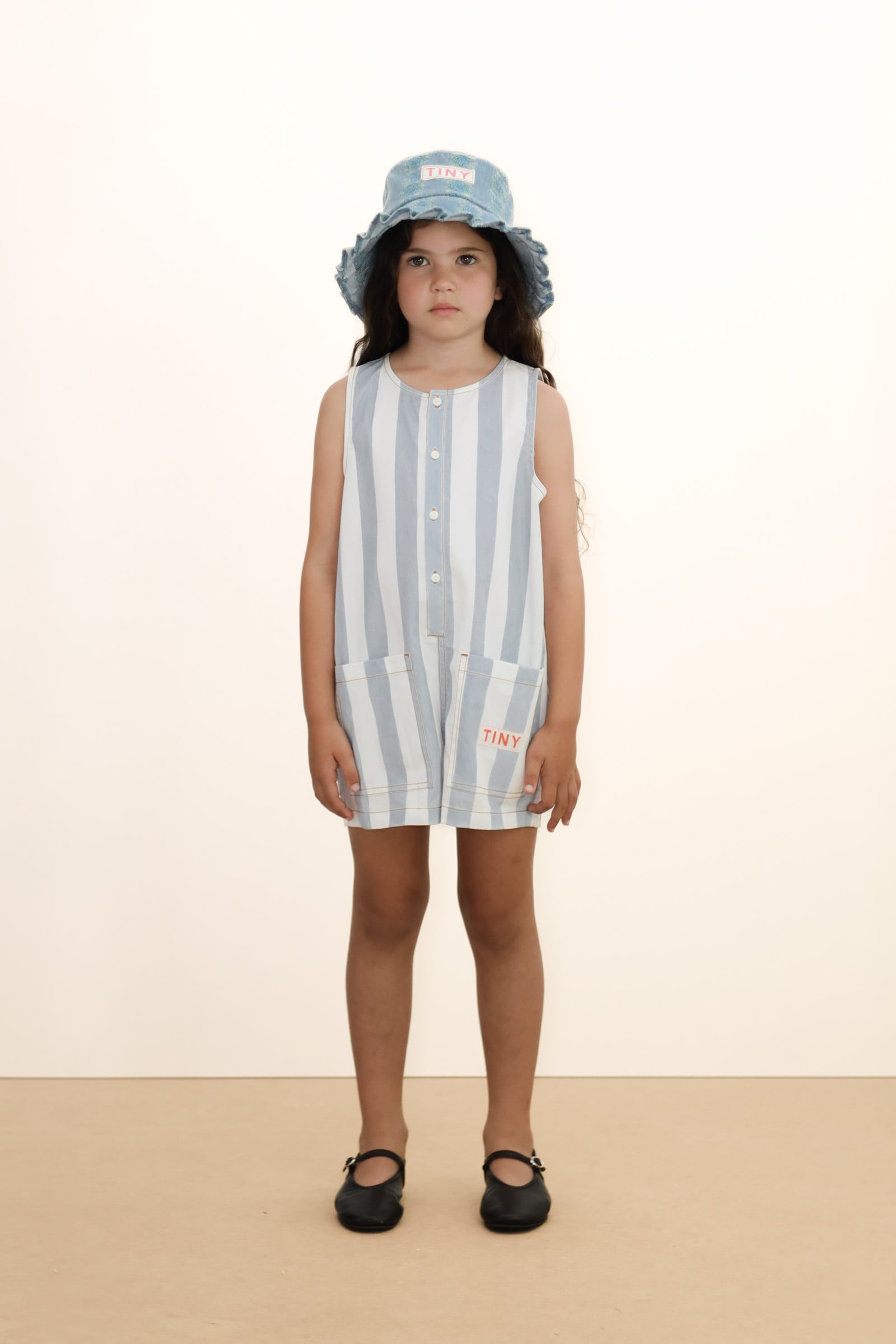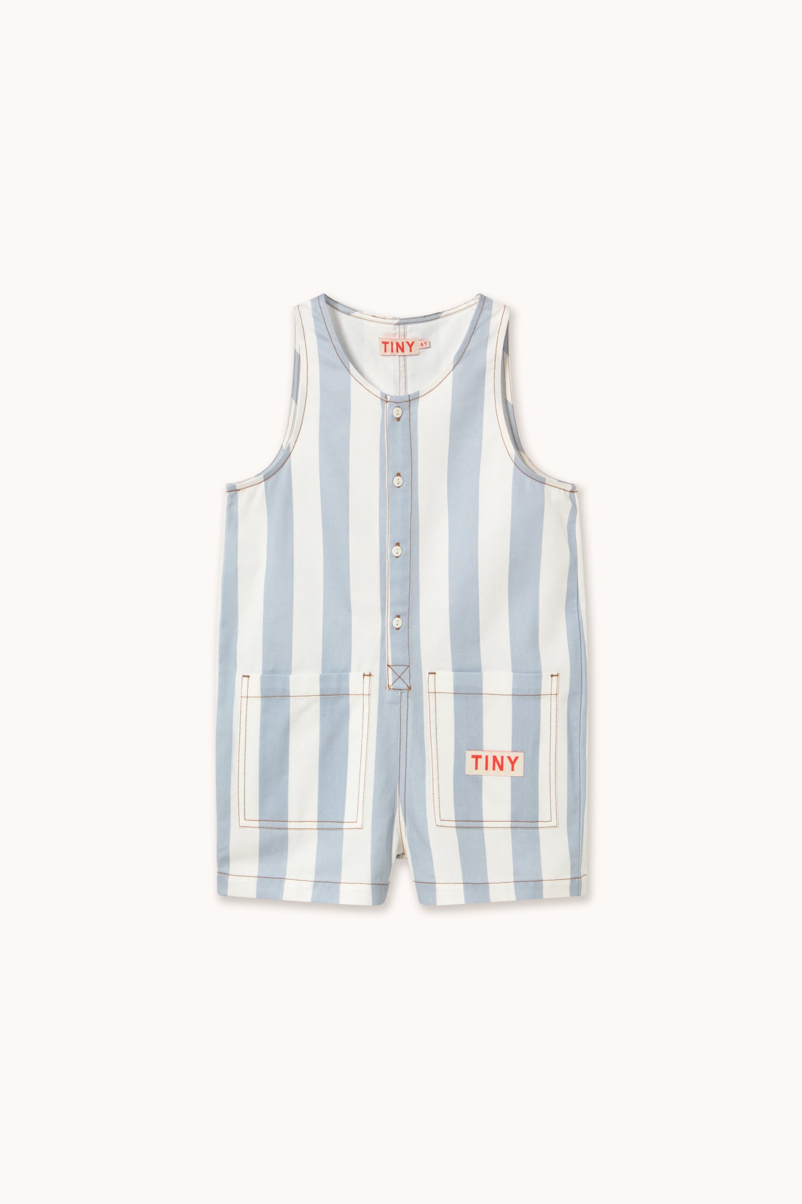 送料無料 tinycottons/STRIPES TWILL SHORT ONE-PIECE washed blue