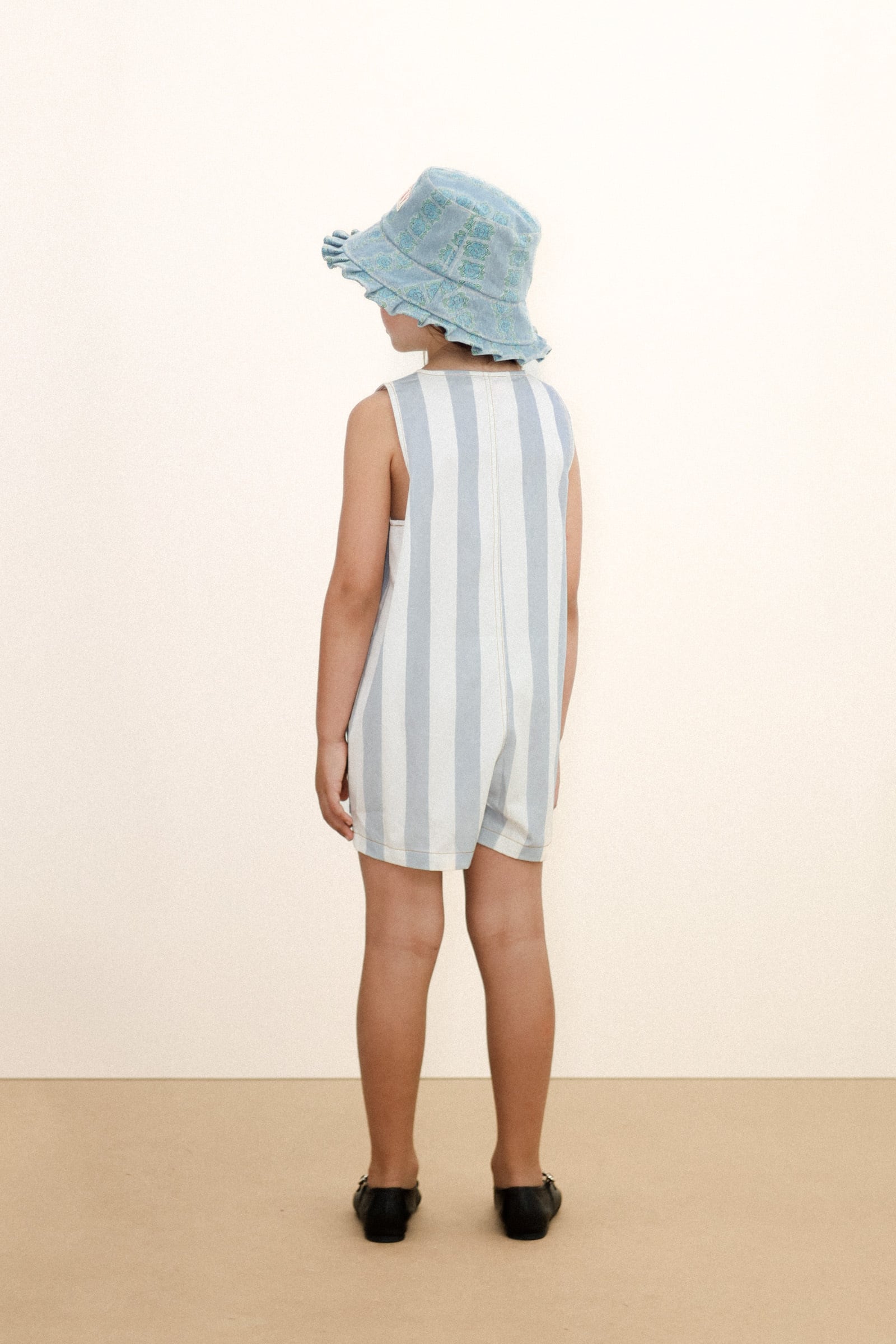 STRIPES TWILL SHORT ONE-PIECE washed blue