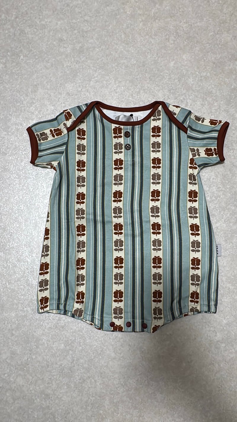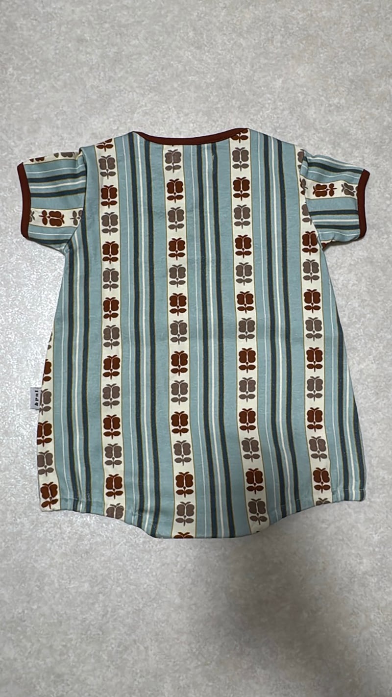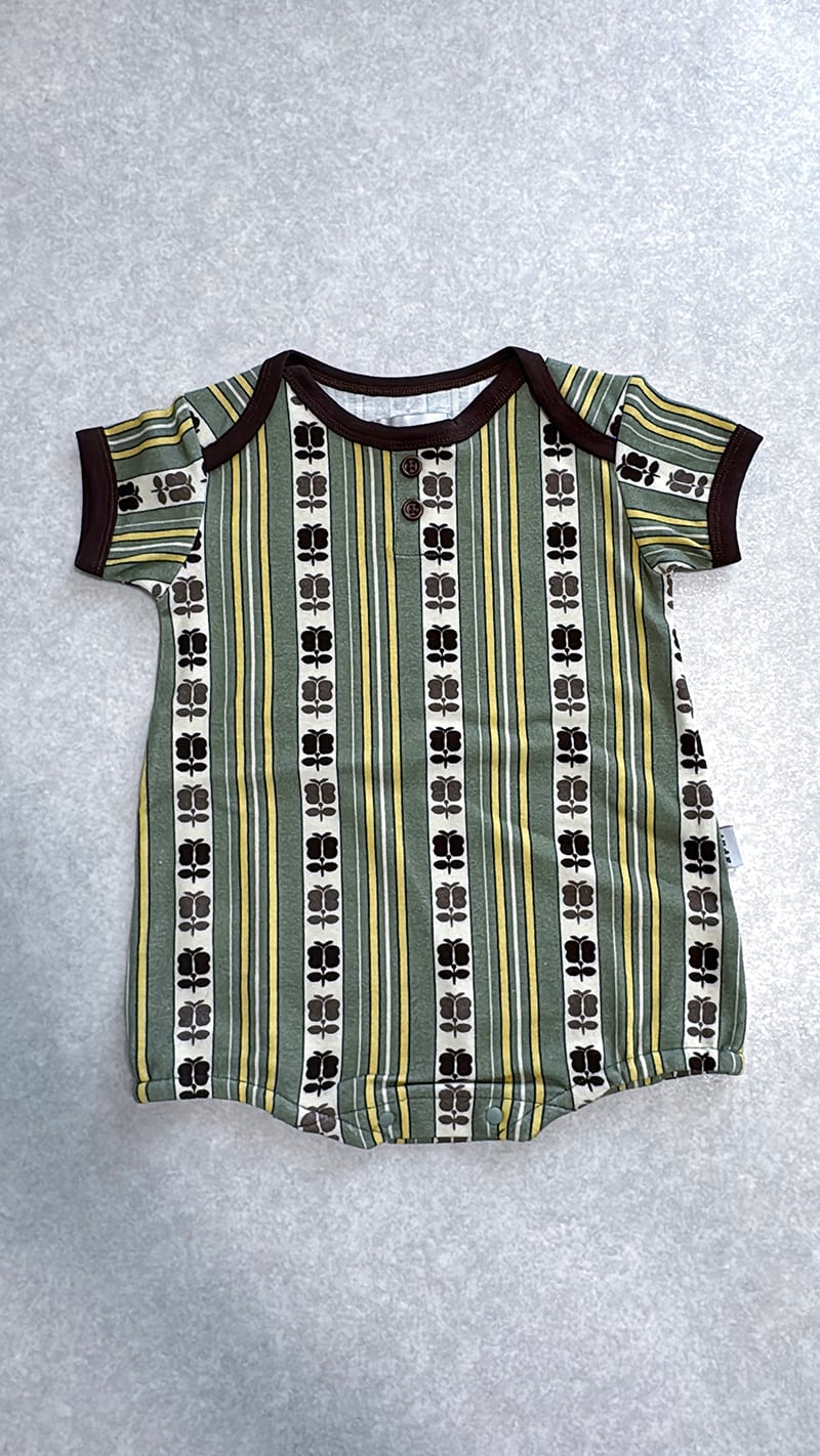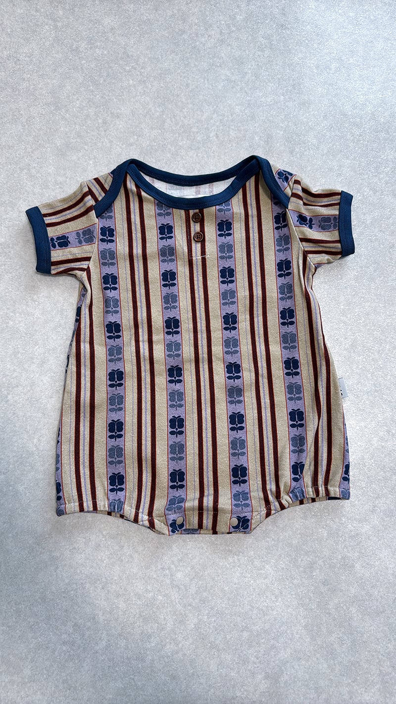 アンティークの帯からヒントを得た、レトロストライプシリーズのベビーロンパースです。
