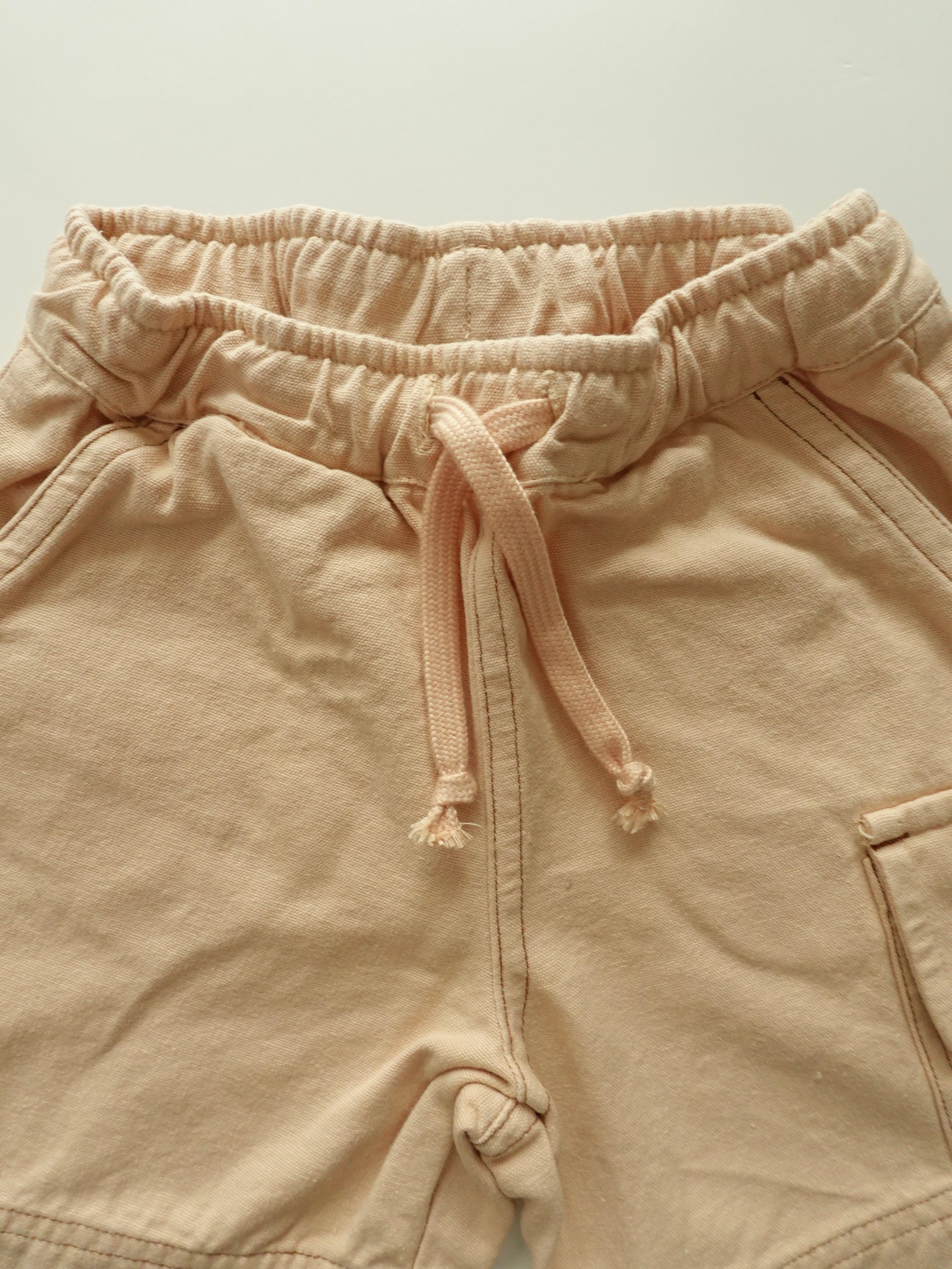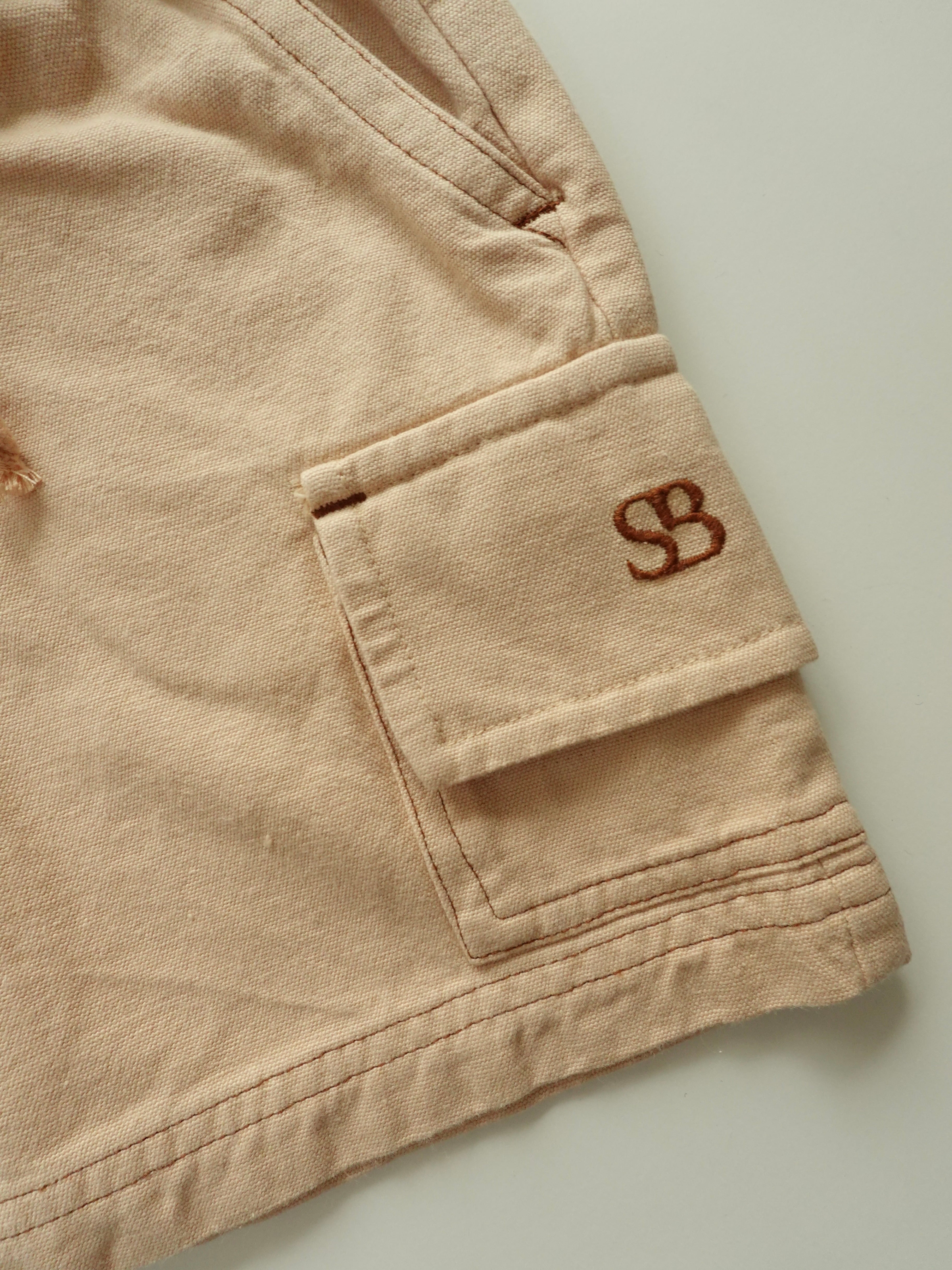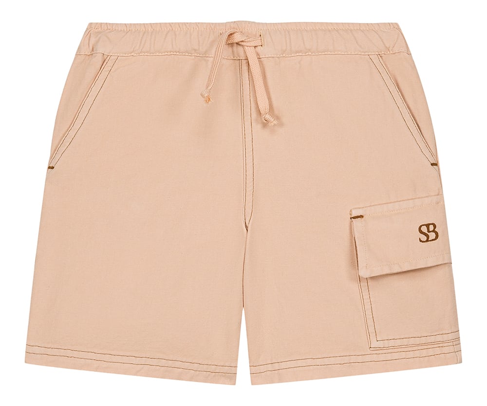 やさしいベージュカラーのバミューダカーゴパンツ。