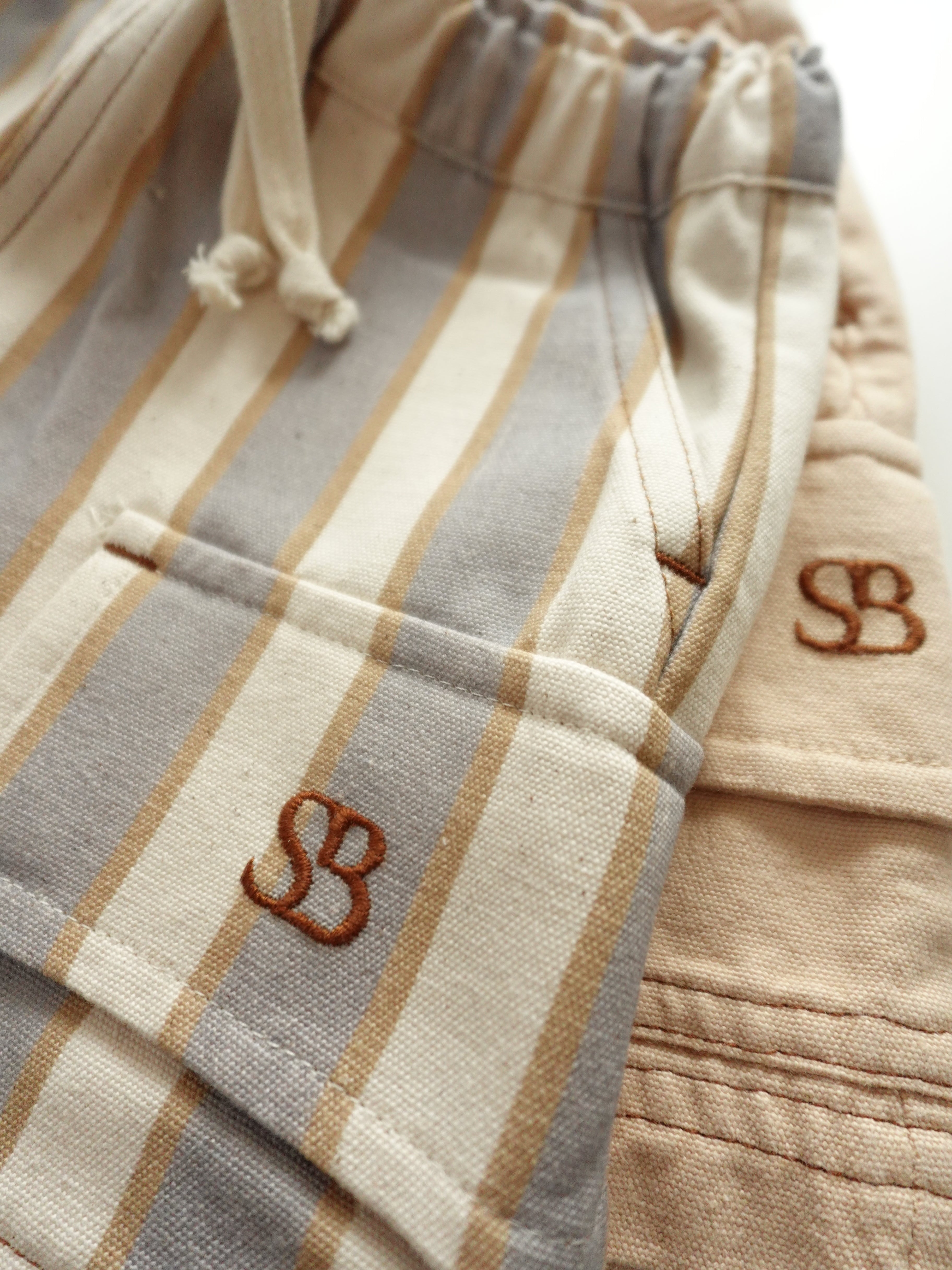 送料無料 STUDIO BOHEME/BERMUDA CARGO - BLUE / GOLD STRIPES