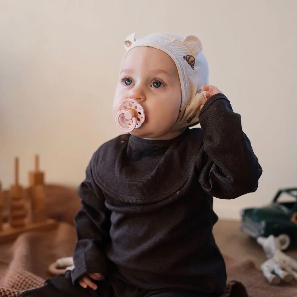 耳付きデザインがかわいい、やわらかなベビーヘルメット。