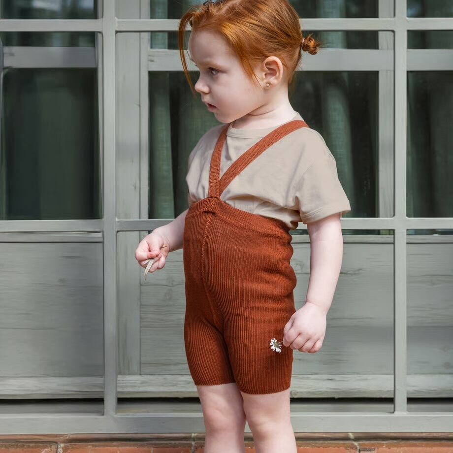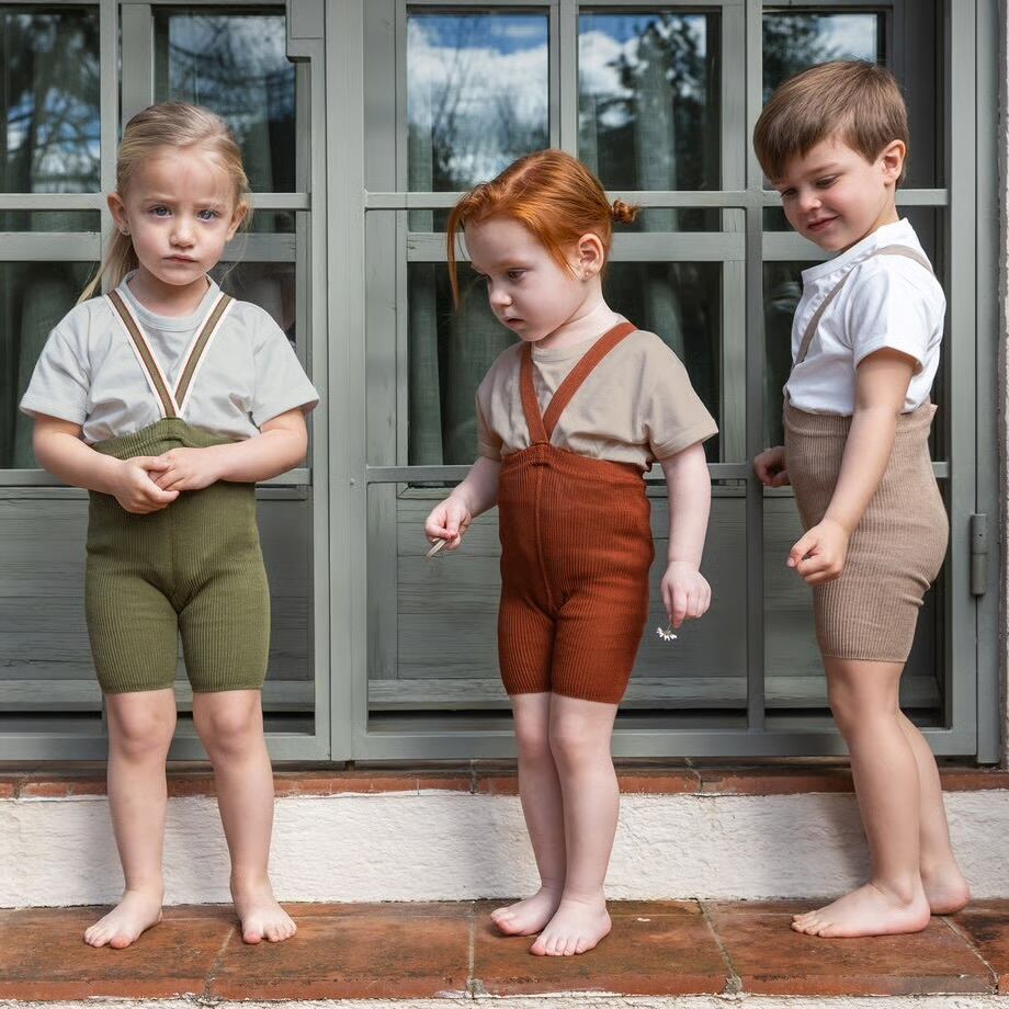 スウェーデン発キッズタイツブランド「SILLY Silas」の肩紐つきショーティータイツ、半ズボンタイプになります。チェコスロバキア伝承の技法で作られた柔らかいコットンリブは、伸びが良いのに縮みにくく、耐久性に優れ、子どもの体に心地よくフィ ットします。