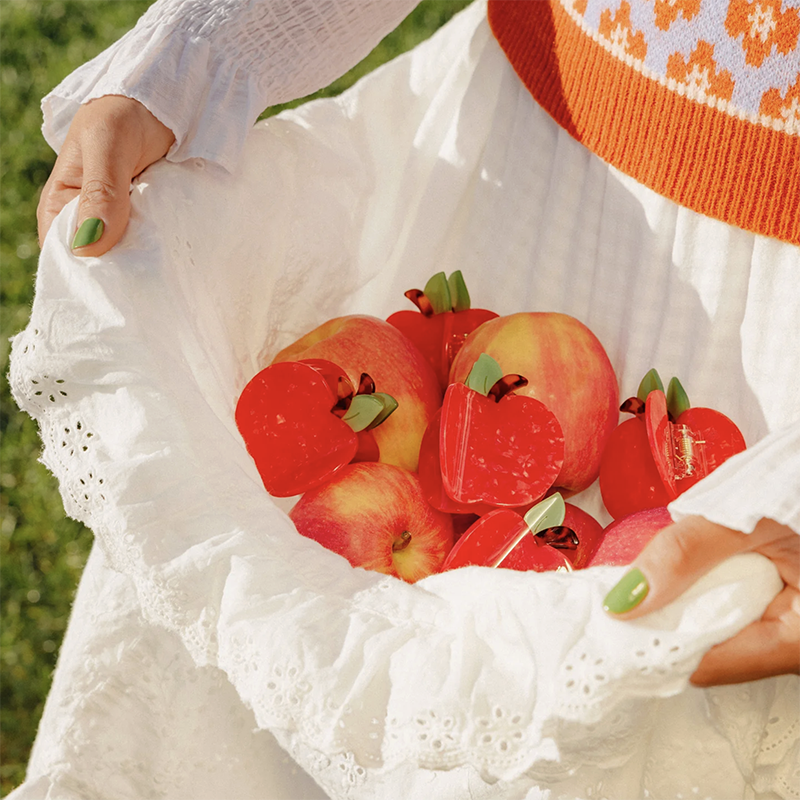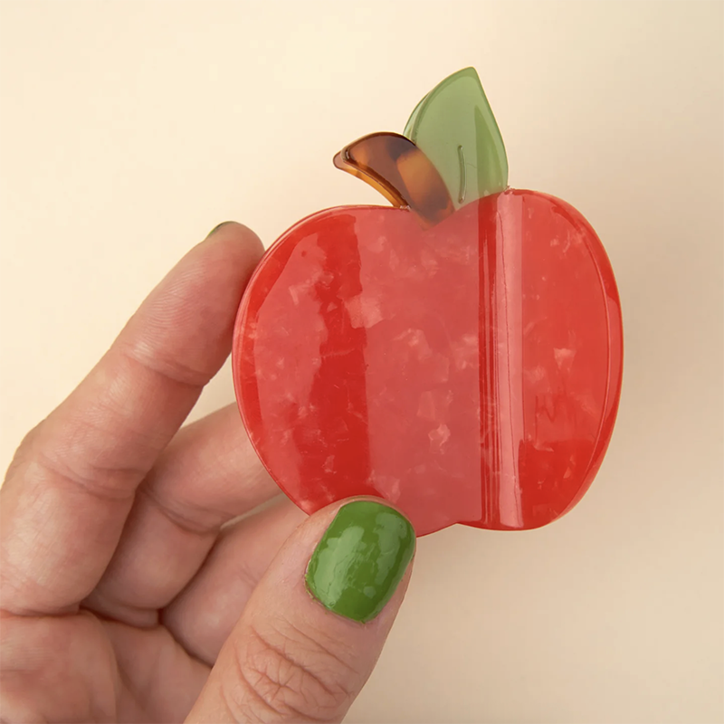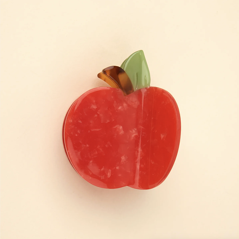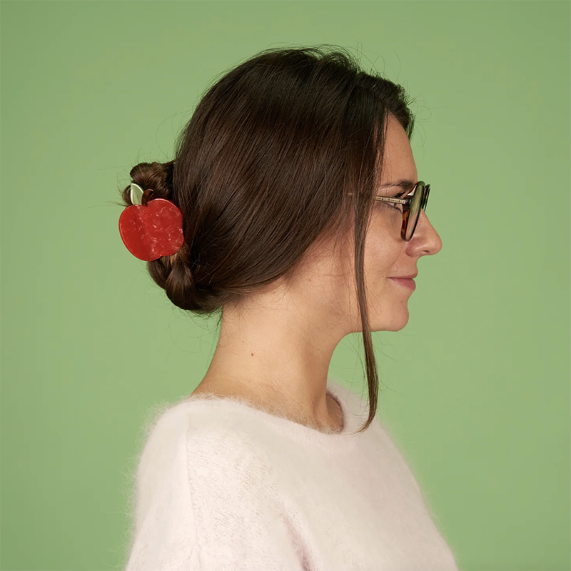ころんとした赤いりんごが可愛い、遊び心のあるヘアクリップ。