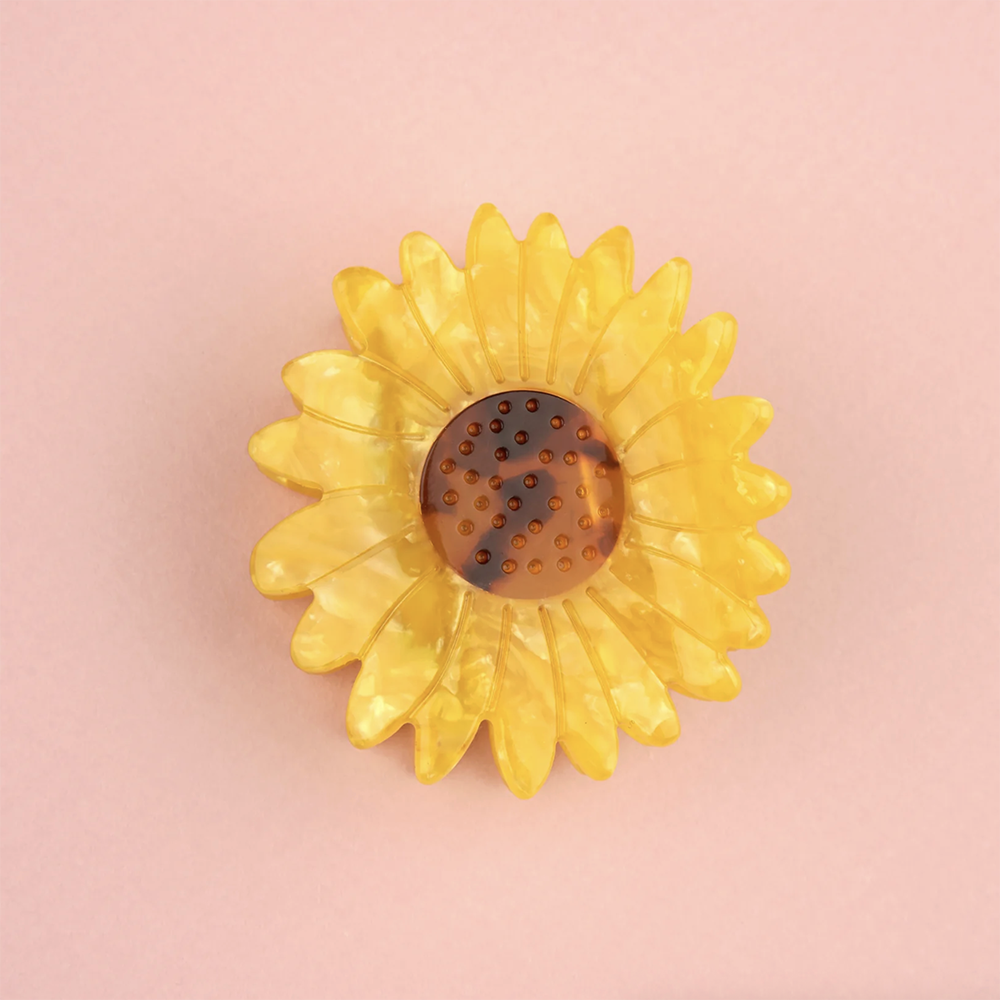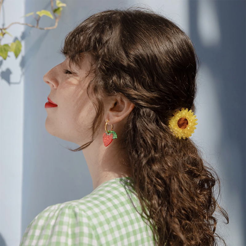 太陽のように明るいひまわりをモチーフにした、レトロな雰囲気が可愛いヘアクリップ。