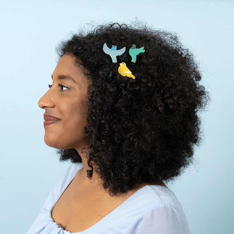 小さなカナリアをモチーフにした、愛らしいヘアアクセサリー。