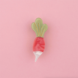 ころんとしたラディッシュをモチーフにした、遊び心のあるヘアアクセサリー。