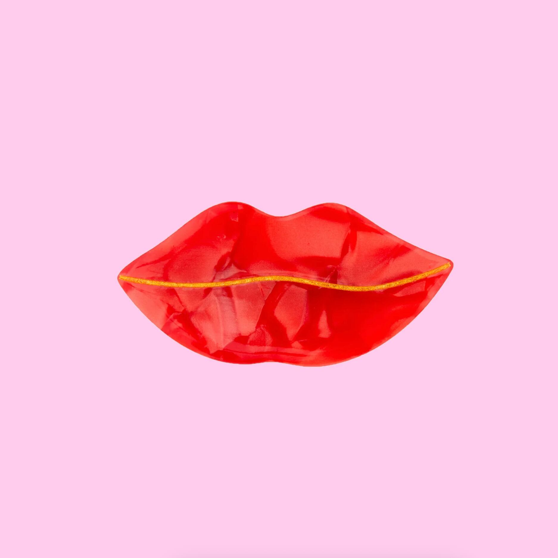 ぷっくりとした赤いリップが印象的な、遊び心のあるヘアアクセサリー。