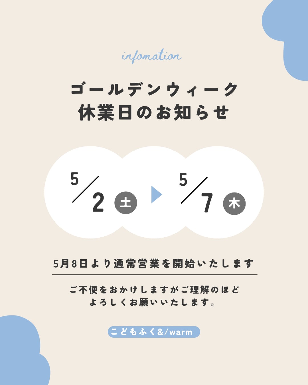 5/2(土)〜5/7(木)はGWのため、発送業務をお休みさせていただきます。