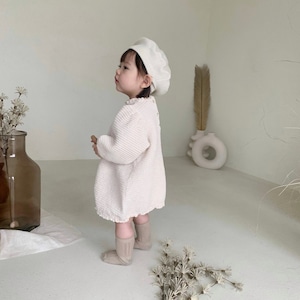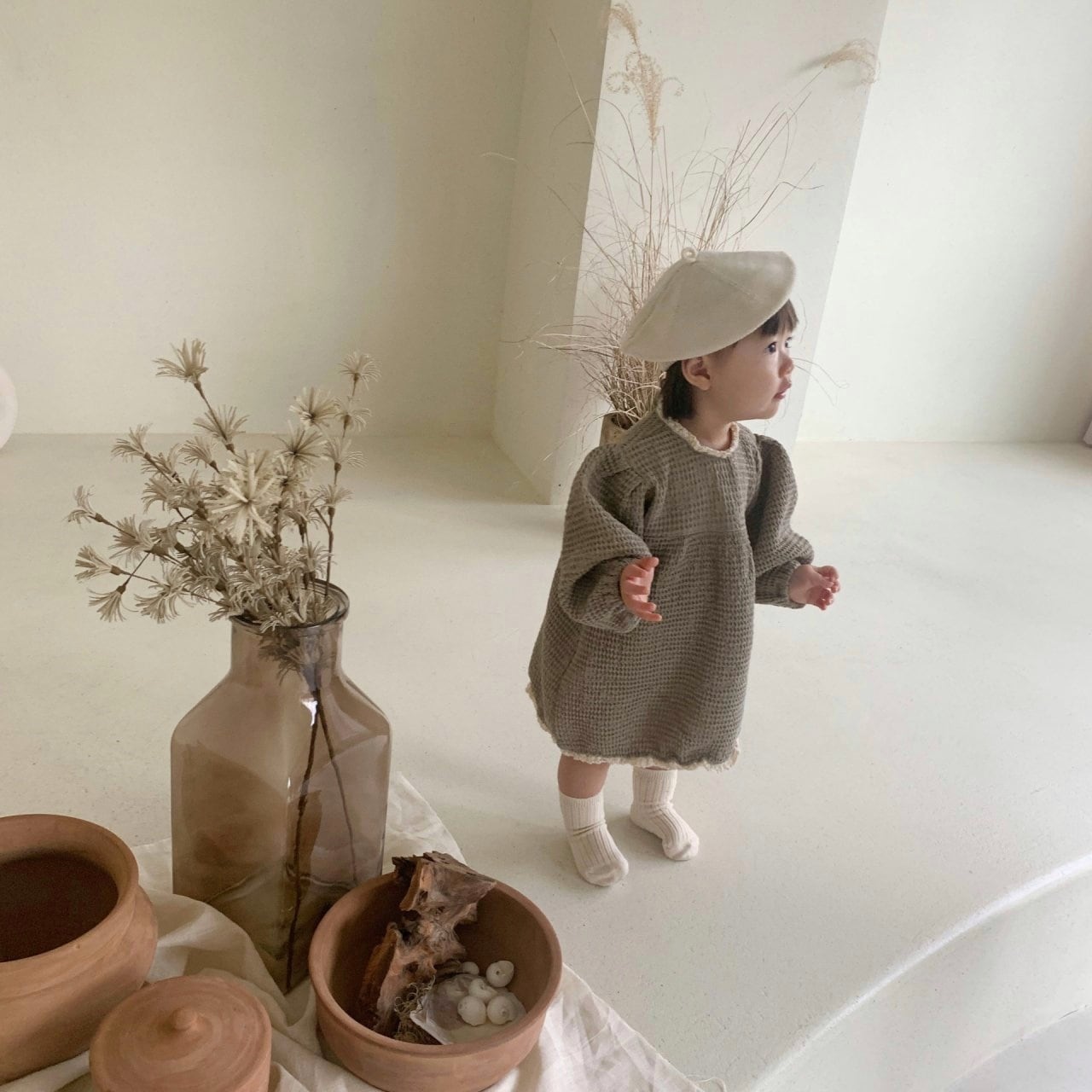 ざっくりとしたワッフル素材と首周りや裾のレースがなんともかわいいワンピース*