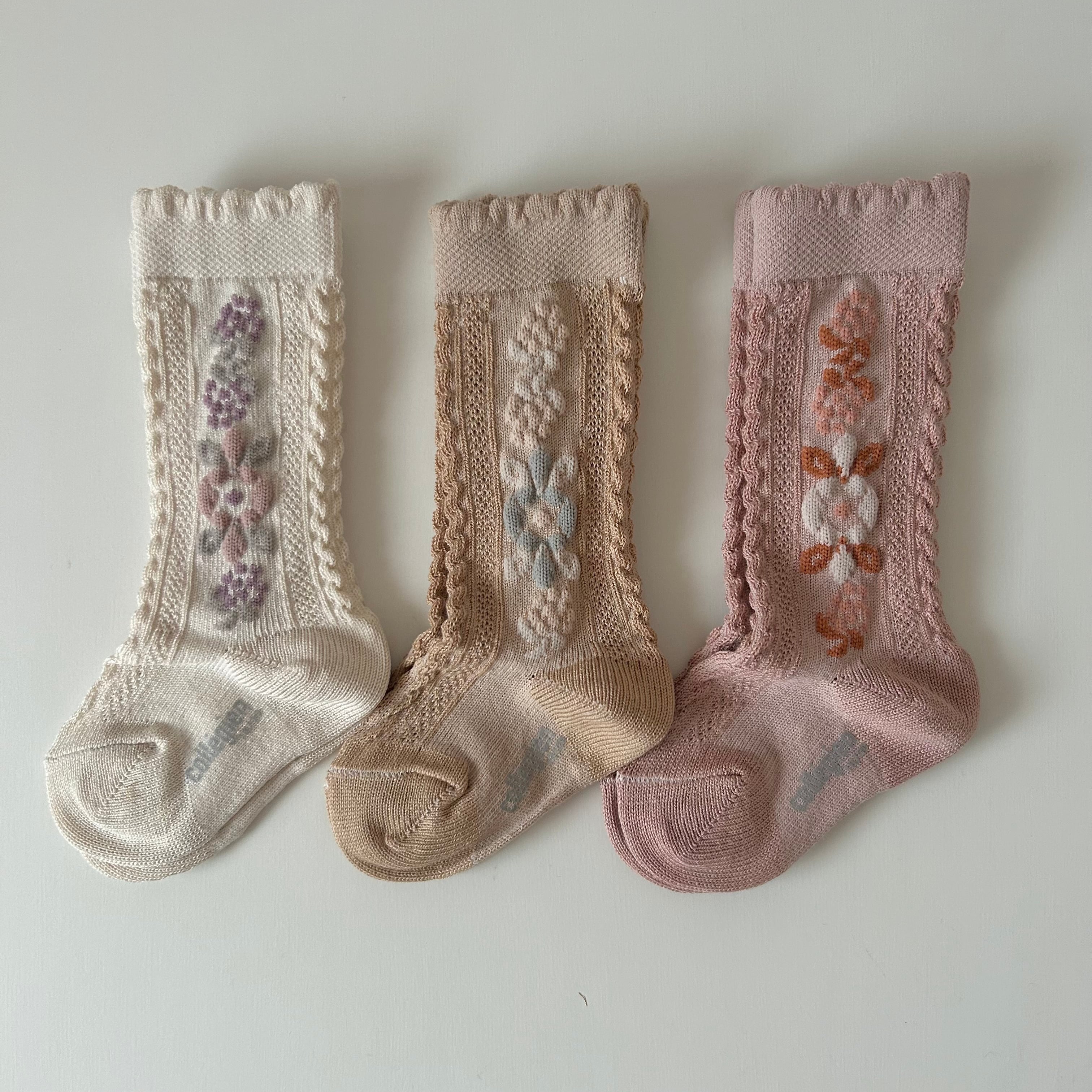 collegien/Dalia-Jacquard Flower Knee-high Socks